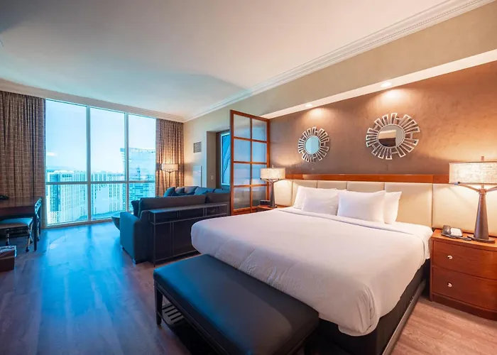 寝室1室のHigh Floor Strip View Suite& No Resort Fee& Free Valet ラスベガス 別荘はラスベガス コンベンション センターから歩いて25分以内の場所に位置しており、近くのさまざまな観光スポットに行きやすいです。